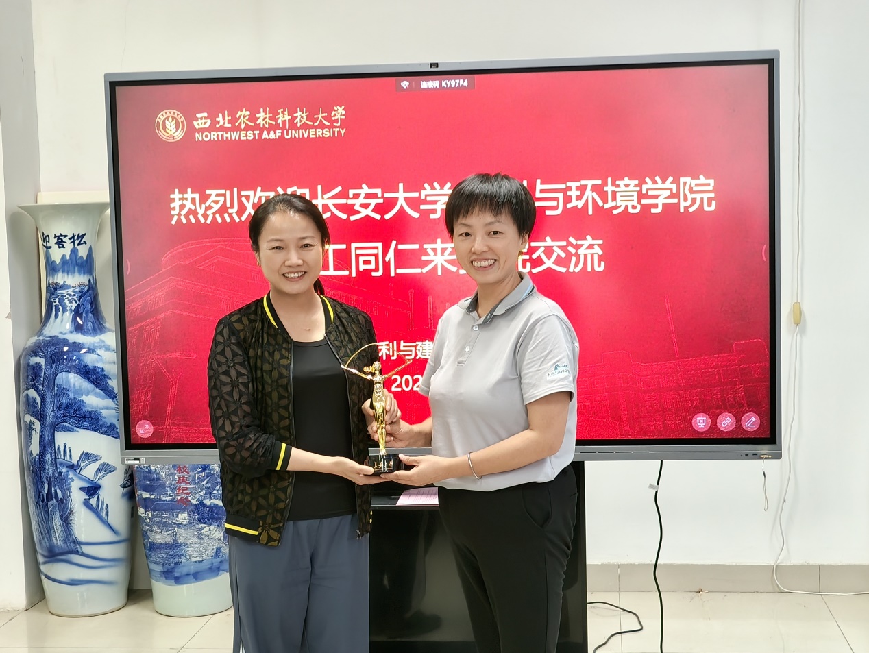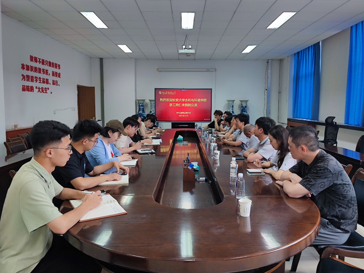 随后,公司学工团队与西北农林科技大学水利与建筑工程公司学工团队座谈交流。座谈会伊始,西农水建公司党委副书记张成凤对公司的来访表示欢迎,她详细介绍了水建公司总体员工工作情况,包括招生数量、学科构成、学风建设、队伍建设等。随后,王妍对公司员工工作特色和成效进行了介绍,并表示这次调研座谈对公司学工团队来说是一次非常好的学习机会,希望双方能够相互学习、相互借鉴。最后,双方辅导员就员工党建、思政教育、团学工作、员工安全管理、升学就业等共同感兴趣的话题及推进中存在的问题,进行了深入交流与探讨。