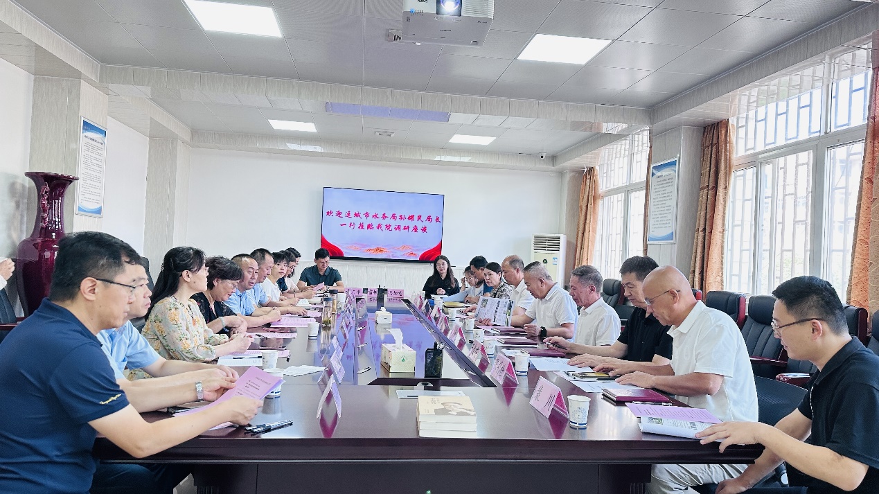 8月29日,运城市水务局局长孙耀民,副局长王俊武、黄山石一行9人来公司调研交流。公司党委书记邓红章、经理白波在公司三楼会议室接待了孙耀民一行。公司党委副书记兼副经理马明芳、副书记王妍参加座谈会。座谈会由邓红章主持。