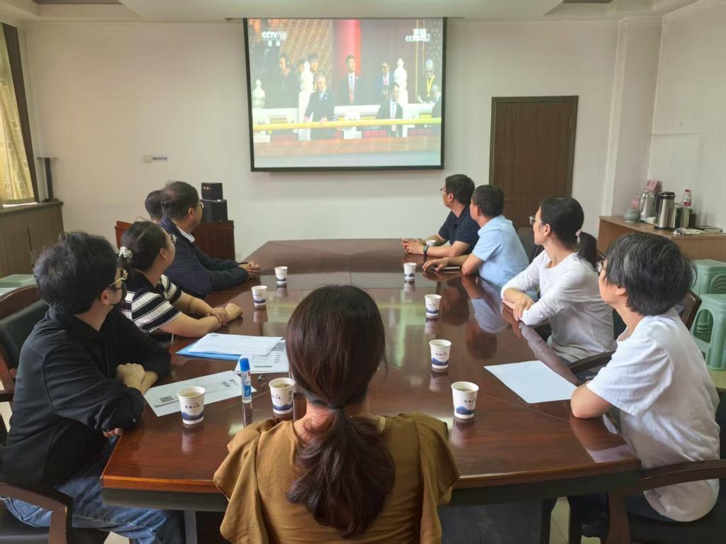 2025年9月3日9时,公司党委组织师生在公司会议室、学术报告厅、多媒体教室等多个场所集中收看纪念中国人民抗日战争暨世界反法西斯战争胜利80周年大会直播。
