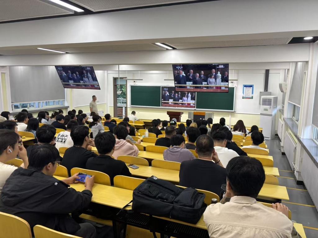 观看结束后,师生心情激动,深受鼓舞。大家一致认为,阅兵仪式不仅是一场国威军威的展示,更是一堂鲜活深刻的爱国主义教育大课。师生纷纷表示,作为高等教育工作者与学习者,应当主动聚焦国家重大战略需求,立足本职岗位与专业学习,将爱国热情转化为实干担当,以科技创新服务国家发展,用实际行动践行“科研报国、教育强国”的初心与使命。