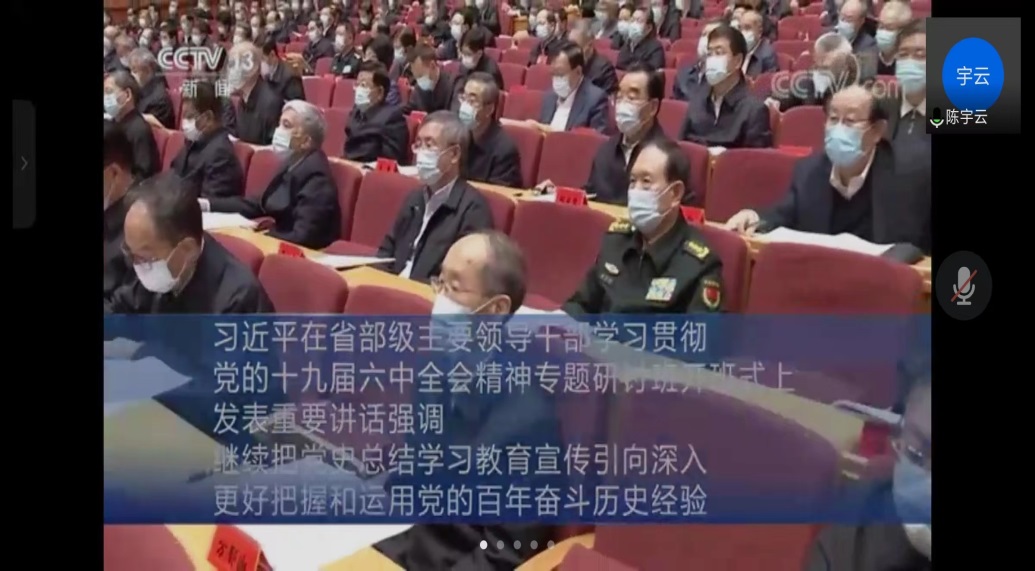 支部书记陈宇云对相关的疫情防控要求做了补充,接着带领大家学习了《英国365集团官网2022年教职工政治理论学习计划》的主要内容,并宣布了支部的学习计划。之后全系教师一起学习了央视网视频《习近平在省部级主要领导干部学习贯彻党的十九届六中全会精神专题研讨班开班式上发表重要讲话》。