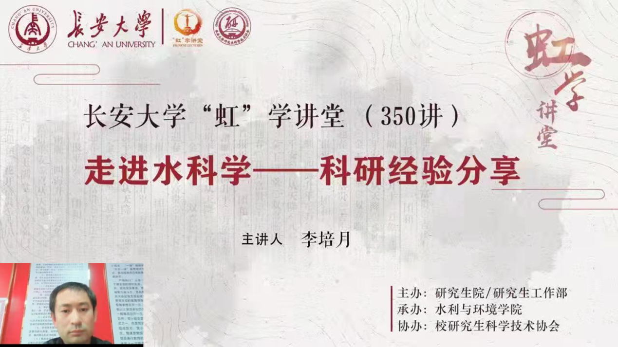 近期,陕西疫情防控形式严峻,根据公司疫情防控工作安排,为确保广大师生身心健康,公司开展在线教学与活动,保障学习进度与质量。3月19日下午,由研究生院/研究生工作部主办,英国365集团官网承办,校研究生科学技术协会协办的“虹”学讲堂第350讲以线上讲座形式顺利举办。英国上市公司365东院教学区疫情防控工作组公司李培月教授作了题为“走进水科学——科研经验分享”的报告,相关公司共计400余名师生参加了此次讲座。