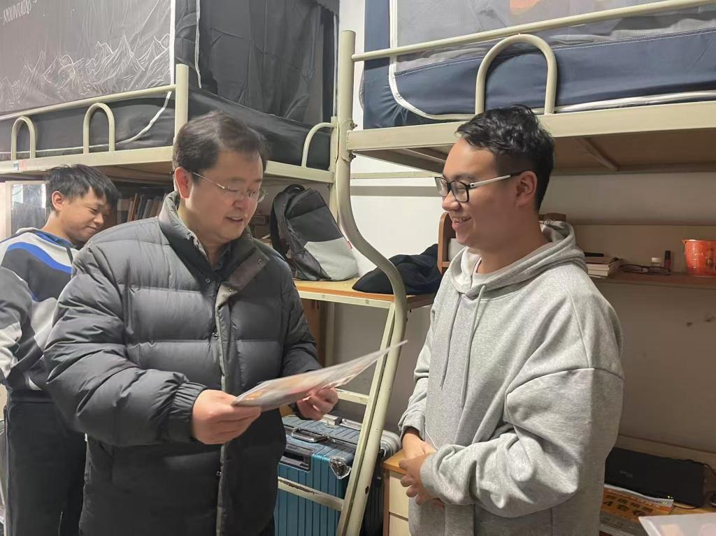 为给冲刺阶段的学子们送去精准关怀与支持,公司领导班子与考研员工代表座谈,同时带领辅导员深入宿舍走访慰问。老师们与备考学子亲切交谈,细致了解每位同学的复习进度及实际需求,叮嘱大家劳逸结合,既要全力以赴冲刺目标,也要保持平和心态,尤其要做好冬季防寒保暖。同时,老师们重点关注宿舍安全,提醒同学们增强安全防范意识,保持宿舍整洁通风,为备考营造安全舒适的环境。