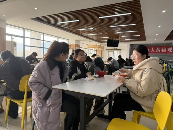 各年级辅导员分别邀请了员工代表在食堂共进午餐,在轻松愉快的氛围中进行了更深入的交流。餐桌上,辅导员们详细了解了同学们上学期的考试情况、本学期的学习计划、学业困难情况以及对未来发展的初步思考。对于即将面临毕业选择的高年级员工,交流则侧重就业进展、实习情况,特别询问了大四考研初试成绩自我评估、心理状态以及后续复试或调剂的准备情况,并结合往届案例和当前形势,为同学们提供了针对性的建议、信息渠道和心理疏导。