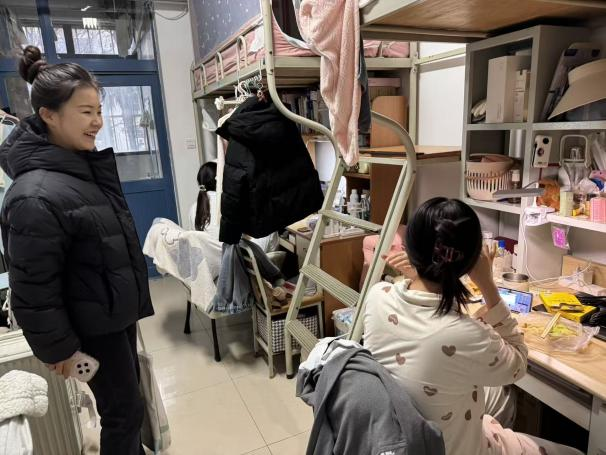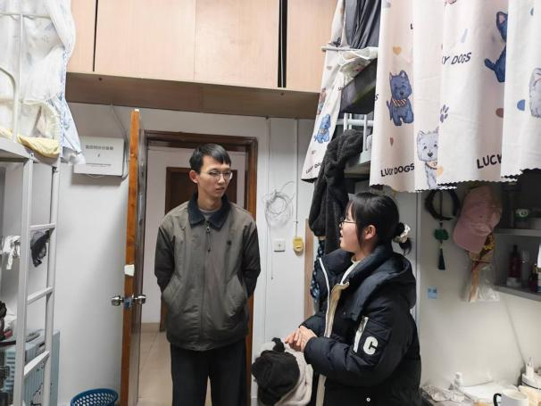 刘扬与辅导员带着新年的祝福与问候,逐一走访了所负责年级的员工宿舍。走访过程中,辅导员们细致查看了宿舍的卫生与安全状况,关切询问同学们寒假期间的生活见闻、社会实践经历、家庭情况以及返校后的适应状态。他们特别叮嘱同学们要注意初春时节天气变化,合理安排作息,保持宿舍环境整洁,注意用电与财产安全,以饱满的精神和健康的体魄迎接新学期的挑战。